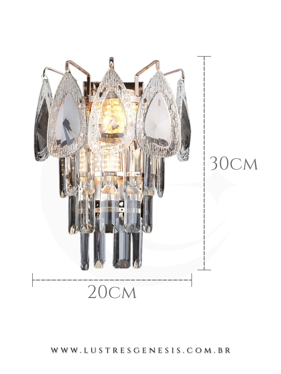 A Arandela Astrid é uma peça ideal para quem deseja transformar o ambiente com um toque de sofisticação e elegância. Com estrutura em cristais e detalhes dourada, oferece uma iluminação cativante, realçando o design moderno e luxuoso.