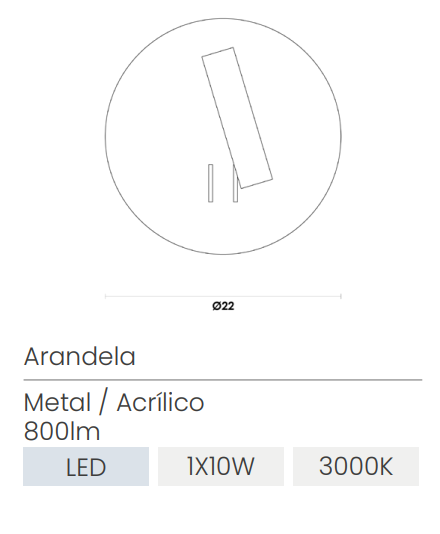 Possui duas iluminação fixa de 3000k Branco Quente, 800Lm de Lúmens e 10W de Potência.