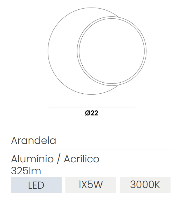 Possui duas iluminação fixa de 3000k Branco Quente, 325Lm de Lúmens e 5W de Potência.