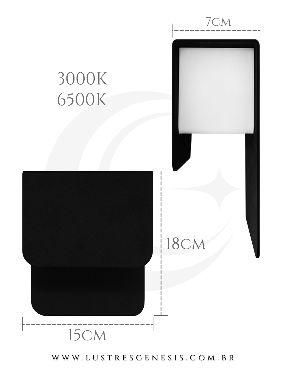Iluminação: 3000k Branco Quente ou 6500k Branco Frio