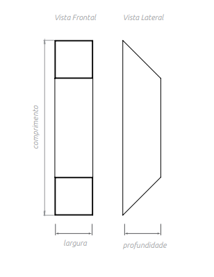 Disponibilizamos a Arandela Vert também com as dimensões: 20cm de Comprimento, 7,5cm de Largura e 7,5cm de Profundidade