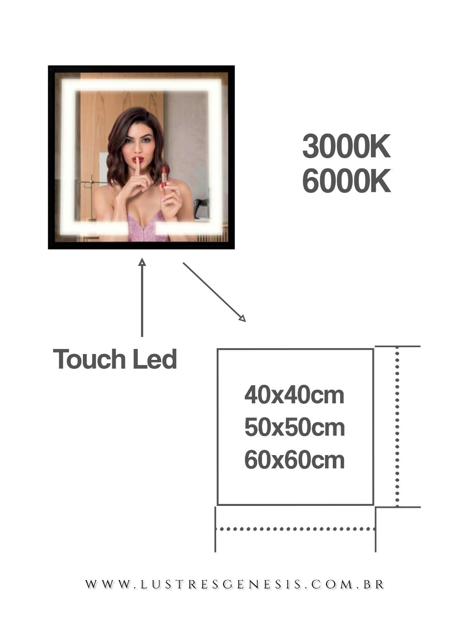 O Espelho Basic está disponível com LED Touch sendo Iluminação de 3000k (Quente), 6000k (Frio) ou 3000k/6000k (as duas juntas).