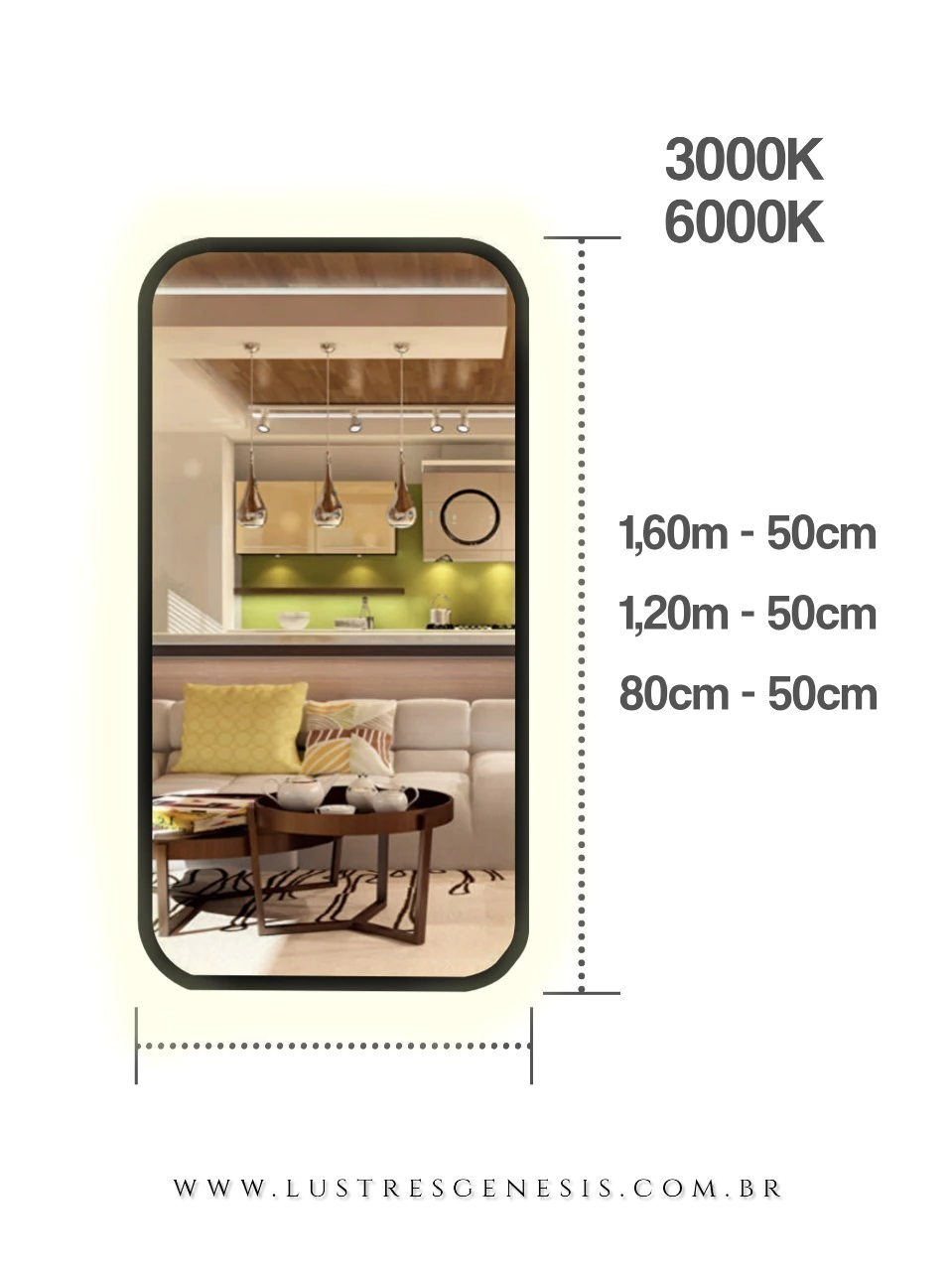 O Espelho Madri da Linha Corpo Inteiro. Realça a beleza do seu espaço com a iluminação Touch, oferecemos as temperaturas de 3000k ou 6000k mudando apenas pelo Touch. Design sofisticado e materiais de alta qualidade. Renove sua decoração com estilo e exclusividade.