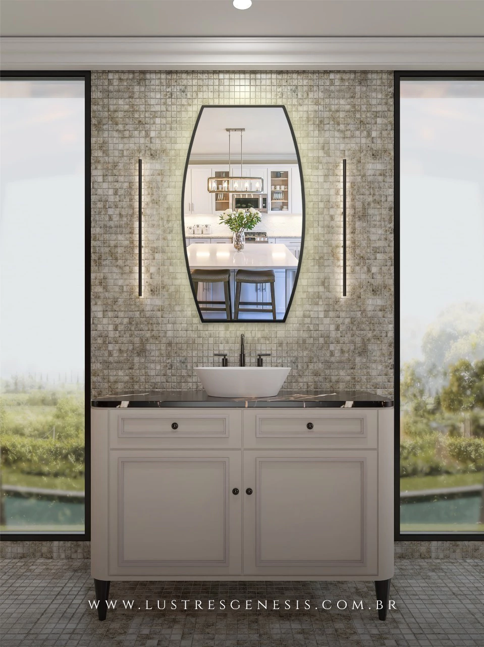 O Espelho Malaga está disponível nas versões com LED Touch sendo Iluminação direta de 3000k (Quente) ou 6000k (Frio).