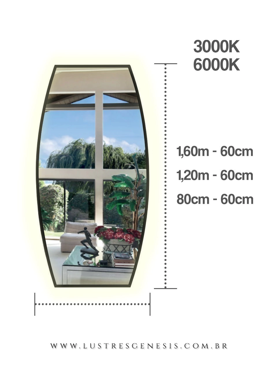 O Espelho Malaga da Linha Corpo Inteiro. Realça a beleza do seu espaço com a iluminação Touch, oferecemos as temperaturas de 3000k ou 6000k mudando apenas pelo Touch. Design sofisticado e materiais de alta qualidade. Renove sua decoração com estilo e exclusividade.