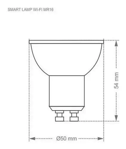 O soquete da Lâmpada Smart Wi-fi é Gu10 possuindo a potência de 4,8W Bivolt. Suas dimensões são 0,54cm de Altura e 0,50cm de Largura