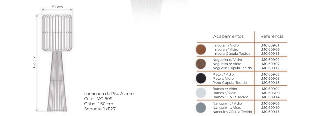 É Utilizada 1 Lâmpada E-27 na Luminária de Chão Álamo.