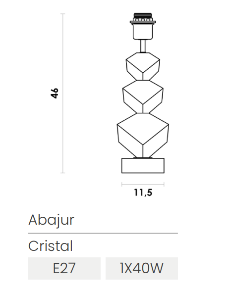 O Abajur Cubes tem 11,5cm de Comprimento e 46cm de Altura.