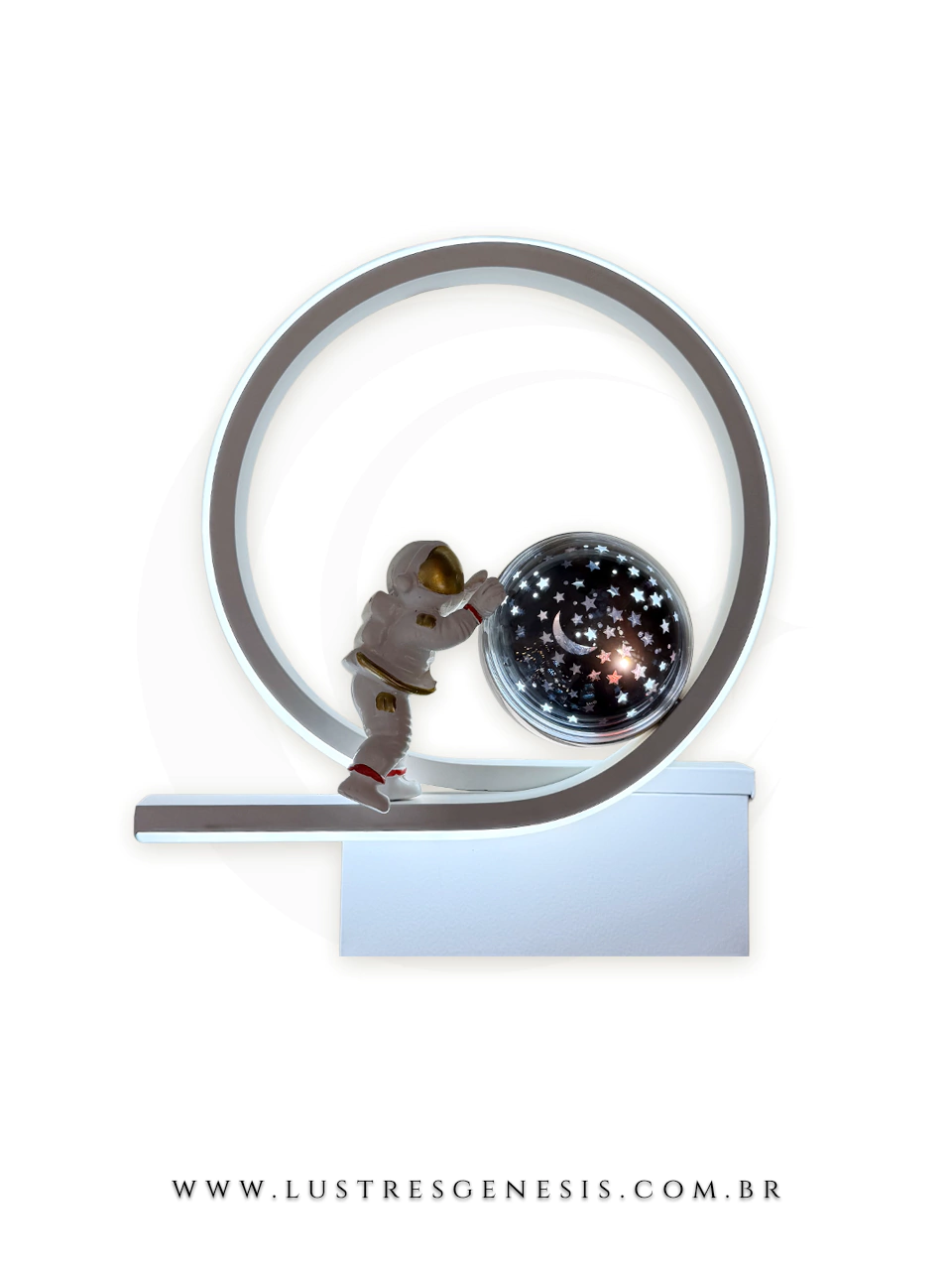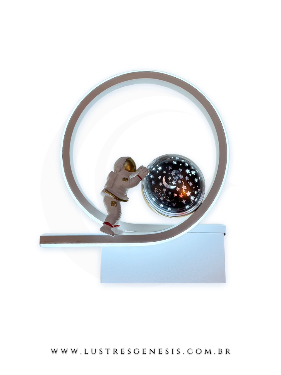 A Arandela Astronauta transforma qualquer parede em uma janela para o universo com esta arandela decorativa e funcional. Um astronauta segurando um globo que simula um céu estrelado, oferecendo luz Quente, Neutro e Frio para criar a atmosfera perfeita e ideal.