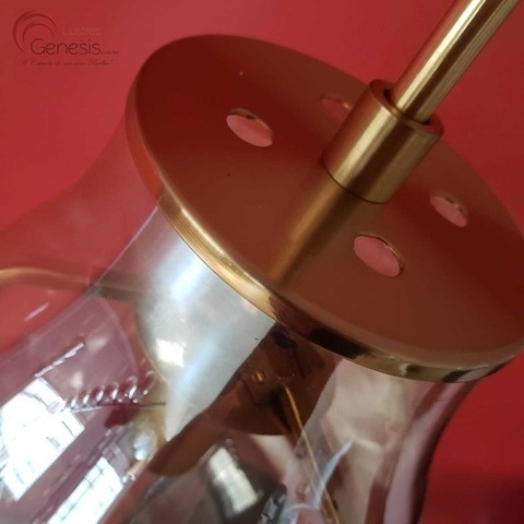 O acabamento do Pendente Caju/ Amora é dourada fosco, sendo enviado com 1,50m de fios mas a empresa disponibiliza a troca dessa altura para até 4,00m.