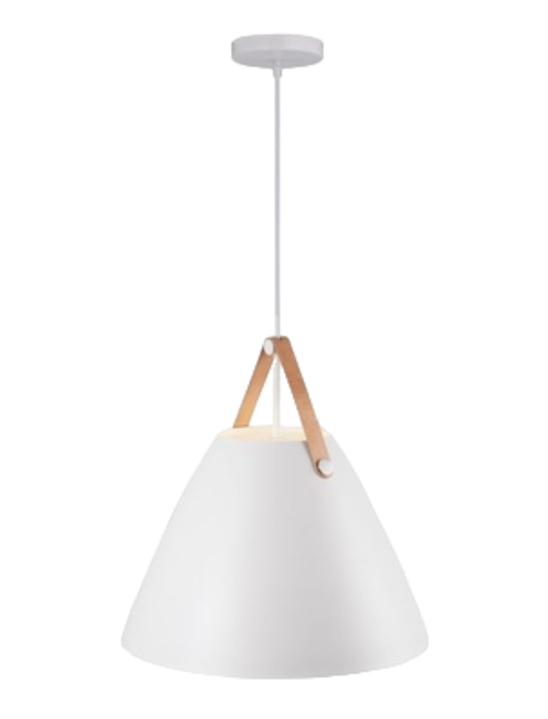 Sua canopla e fio na cor branca são ideais para ambiente com tons mais claros junto ao seu acabamento de Couro Marrom, sendo o detalhe do produto!