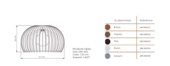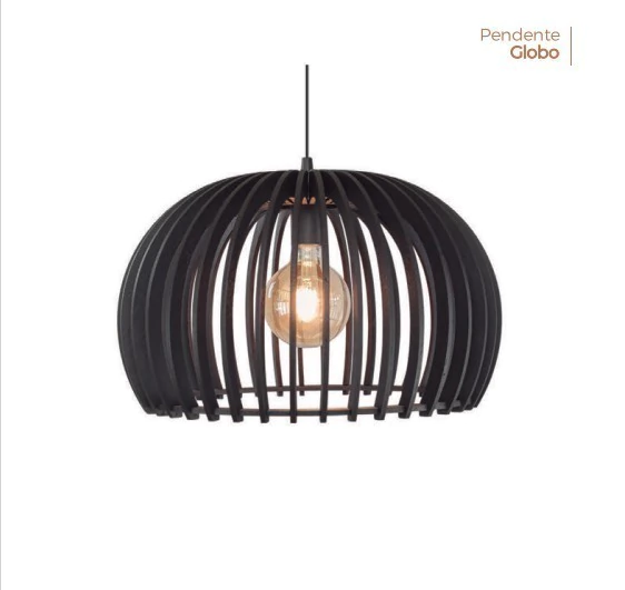 A estrutura possui Ø28cm de Comprimento, 41cm de Altura e enviamos um cabo de 120cm para que você possa instalá-lo perfeitamente. O material utilizado no Pendente Globo é Madeira Natural Multilaminada.