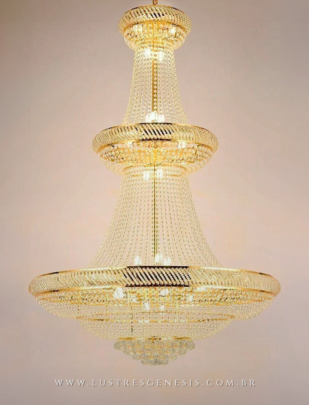 Sua estrutura já com os cristais possui as dimensões de 1,20m de Diâmentro e 1,80m de Altura, um dos maiores lustres em proporção da Lustres Gênesis. São utilizadas 56 lâmpadas E-14 no Lustre Cantão.