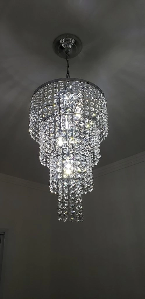 Faça a instalação elétrica, fixação no local desejado e depois retire as embalagens que envolvem os cristais.