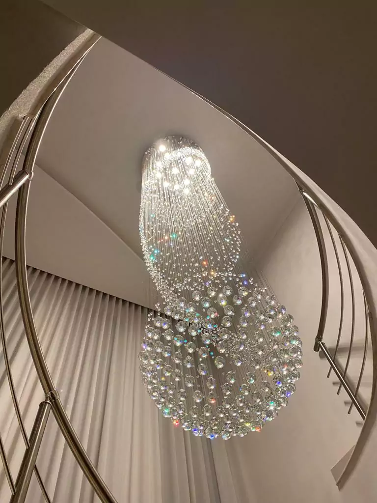 Utilizamos o Cristal bola de 40mm na fabricação dos nossos Lustres para Pé Direito Duplo.