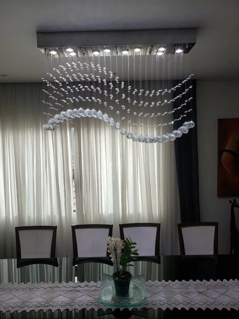 O Lustre de Cristal Onda é uma peça de altíssima Classe e Luxo para o ambiente. Seu design senoidal é de fato belíssimo!