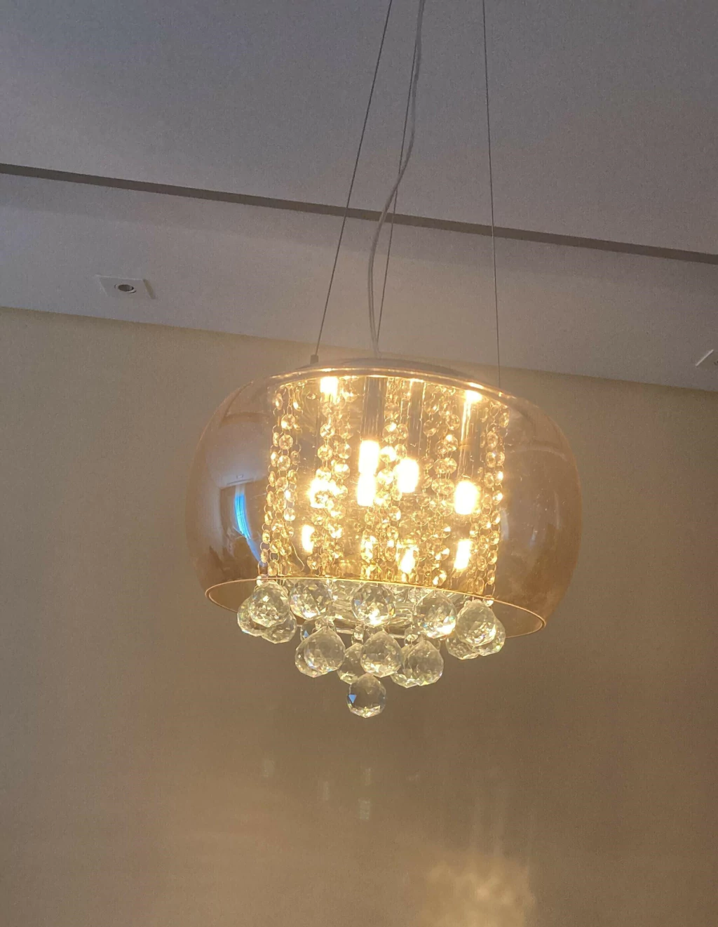Após a instalação elétrica e a fixação da base no teto, insira os cristais conforme orientamos no manual.