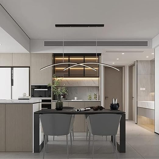 Indicamos o Lustre Pendente Curve Duo para Sala de Jantar, Quartos, Sala de Estar e Escritórios.