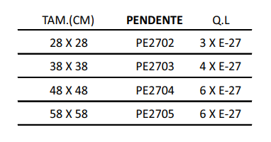 48x48cm de Dimensão - 4 Lâmpadas E-27