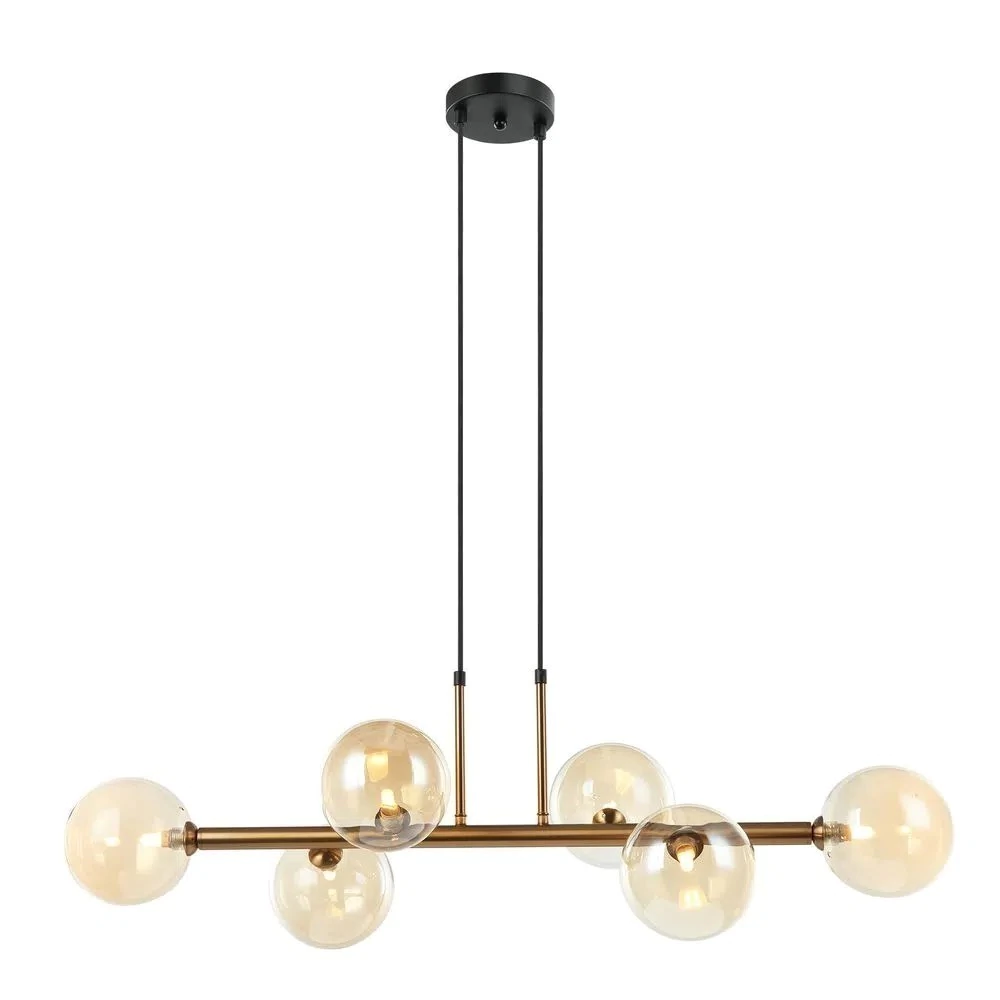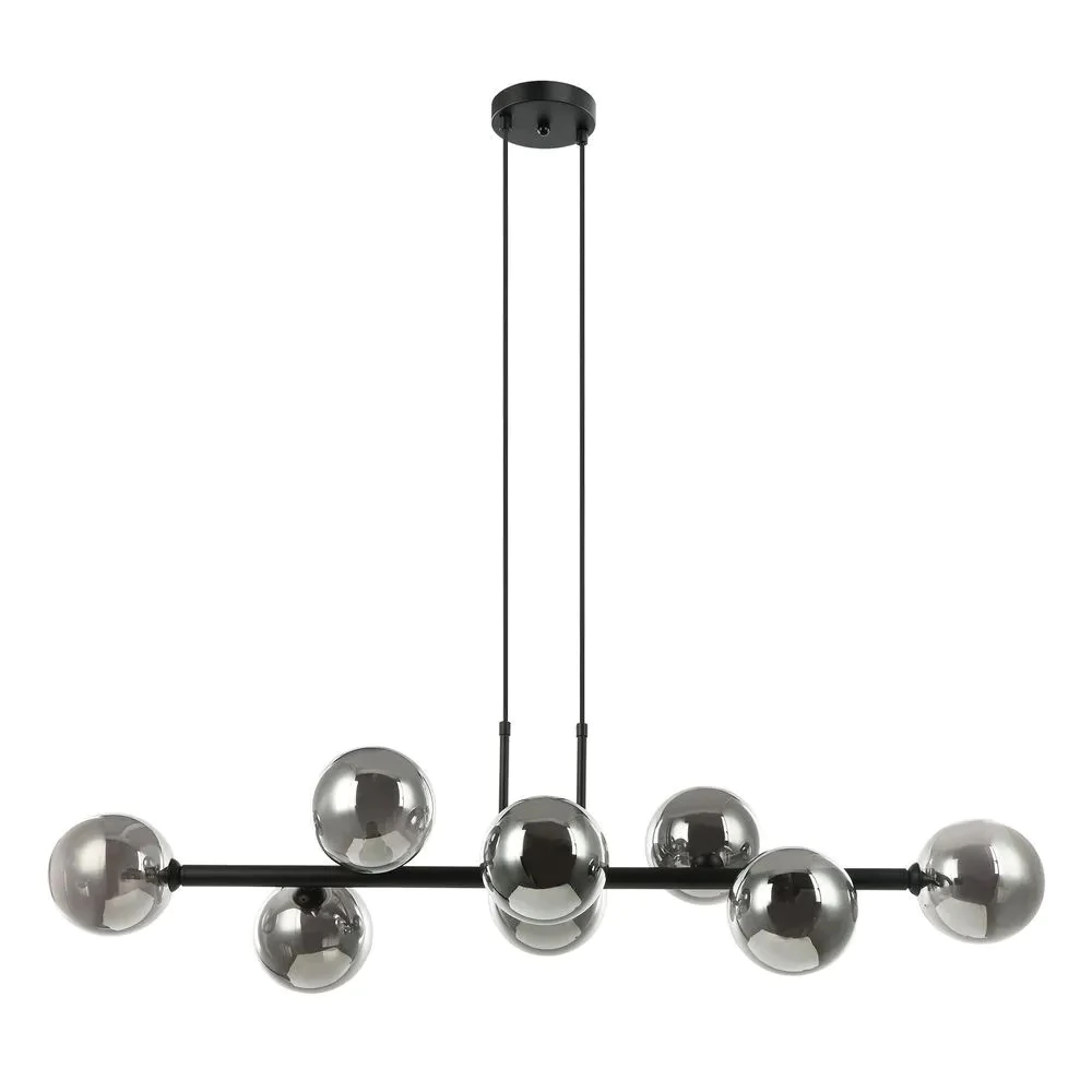 Dispobilizamos o Lustre Pendente Abaporu também na medida de 110cm de Comprimento, 28cm de Altura e 34cm de Largura, equipado com 8 Lâmpadas G9 Halopin.