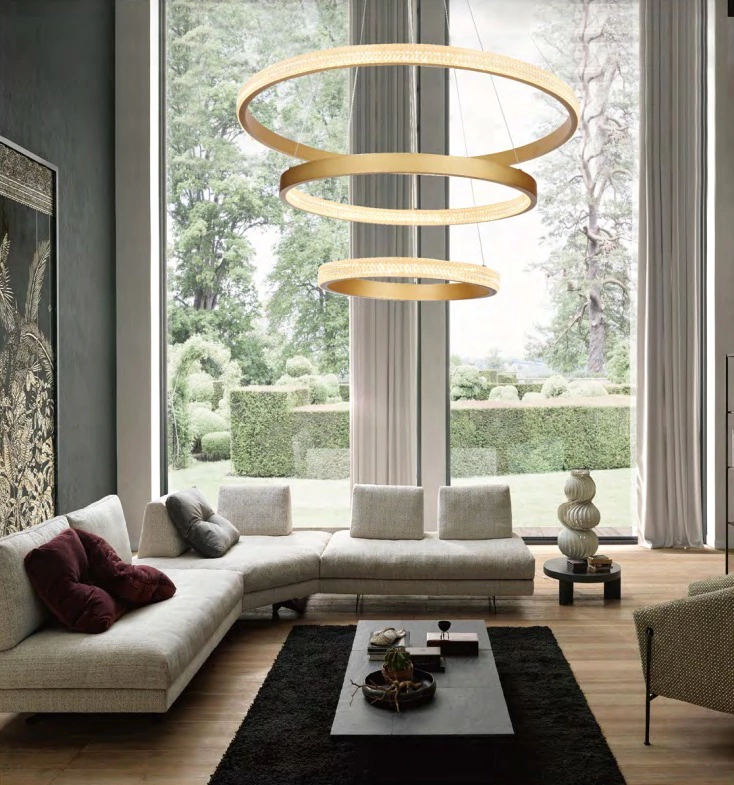 Disponibilizamos o Lustre Pendente Aliança também no tamanho de: 3 anéis com Ø40cm, Ø60cm e Ø80cm de Diâmetro ideal para a sua ideia de decoração.