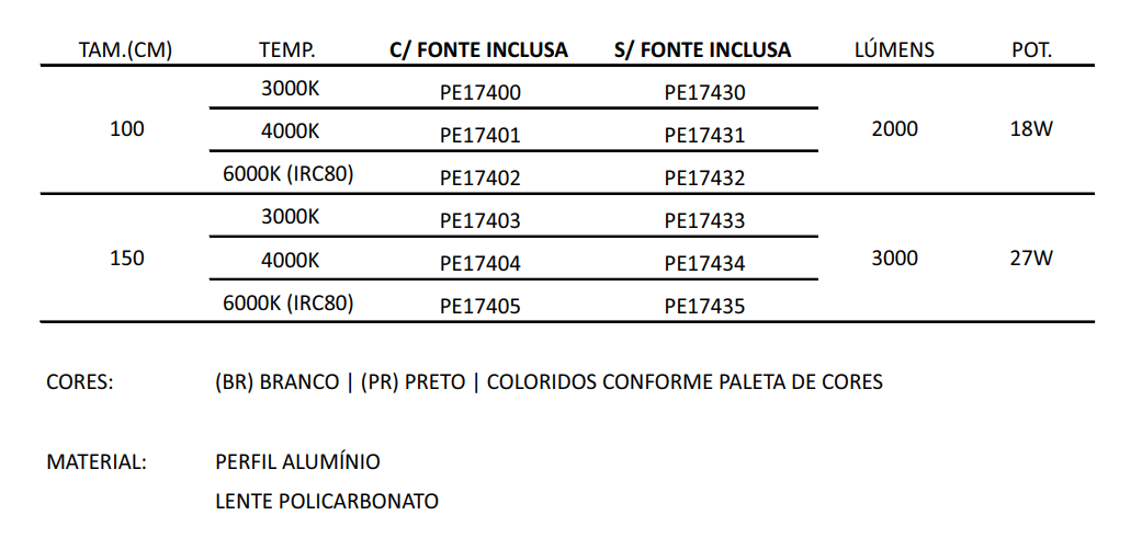 Material: Perfil, Alumínio e Lente Policarbonato