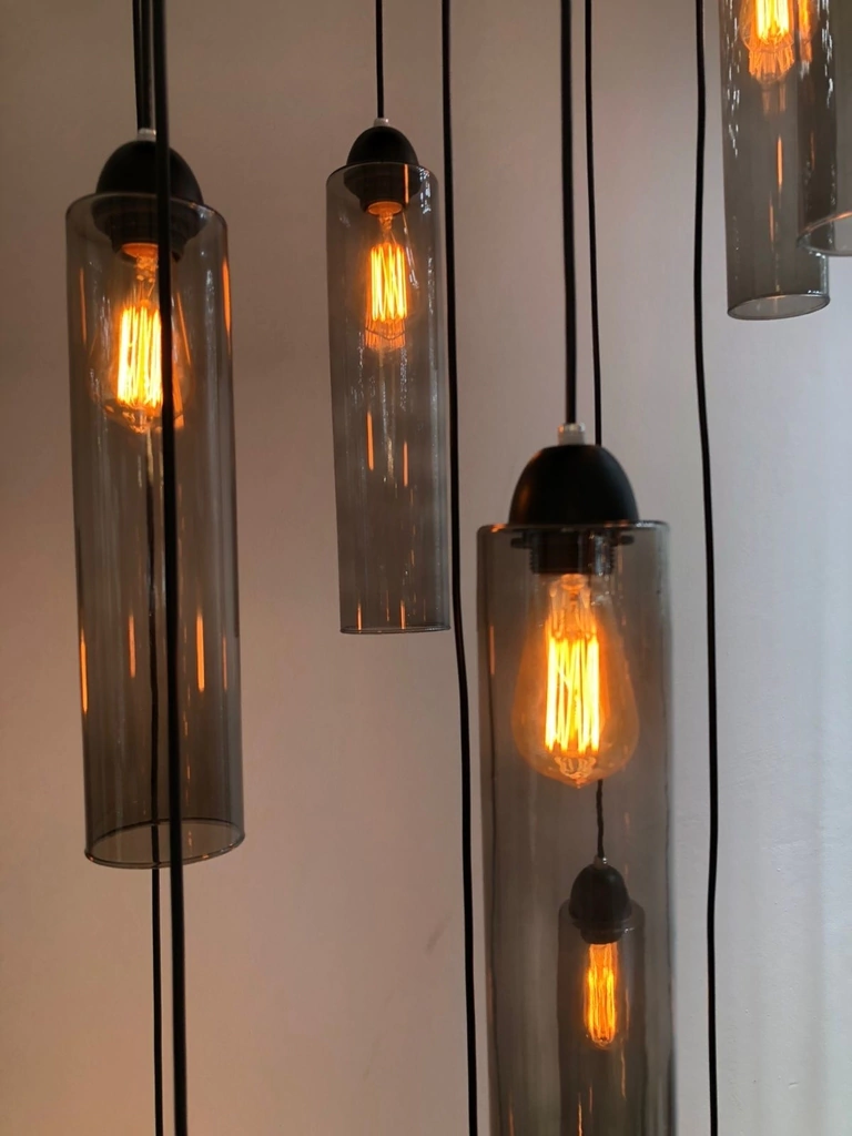 Desenvolvido com 12 Tubos de 36cm de Altura nas tonalidades: Âmbar,Fumê ou Transparente ideal para ambientes Pé Direito Duplo - Pé Direito alto - Escadas e Hall de Entrada.