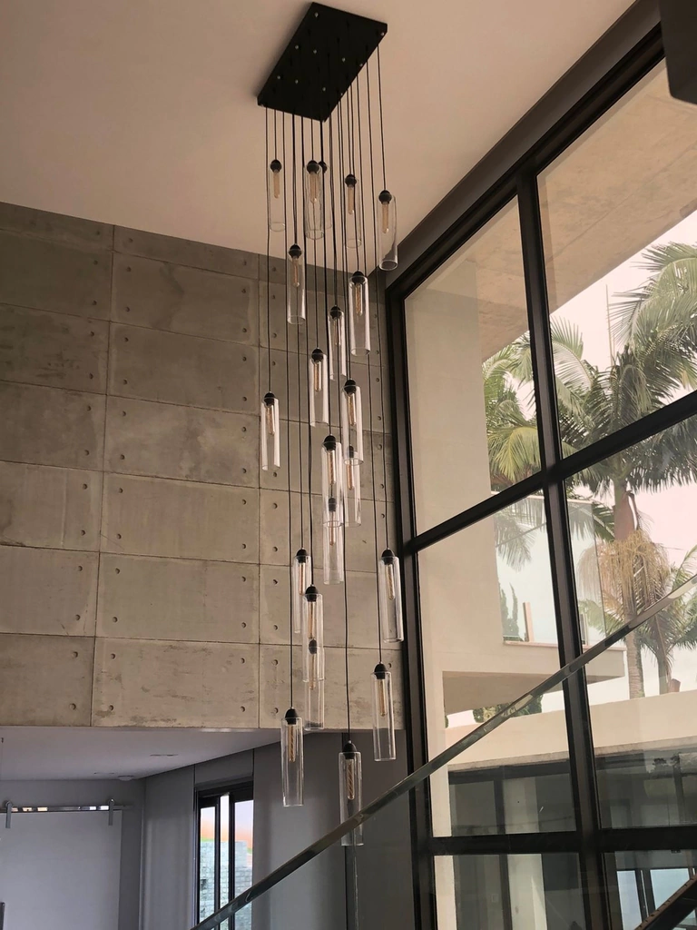 DDesenvolvido com 18 Tubos de 36cm de Altura nas tonalidades: Âmbar,Fumê ou Transparente ideal para ambientes Pé Direito Duplo - Pé Direito alto - Escadas e Hall de Entrada.