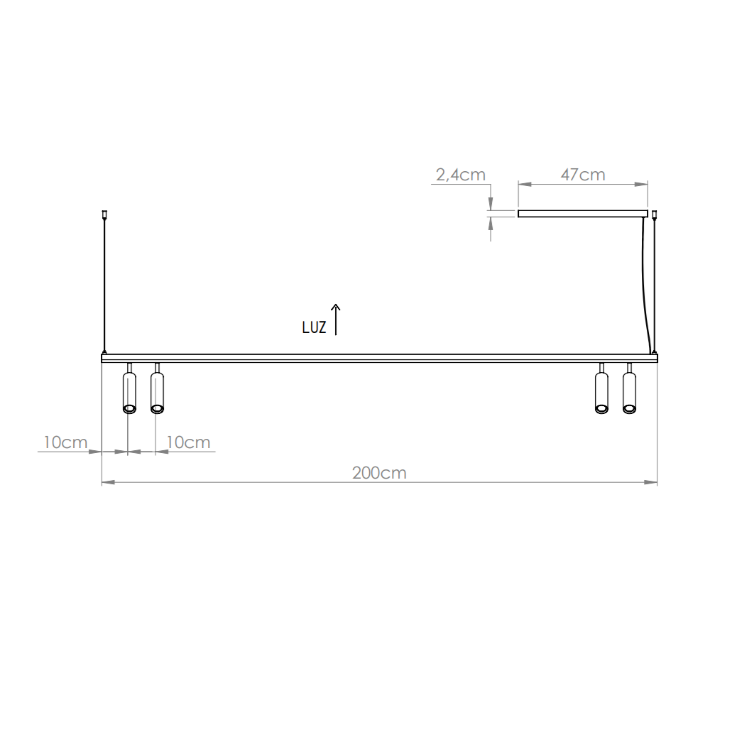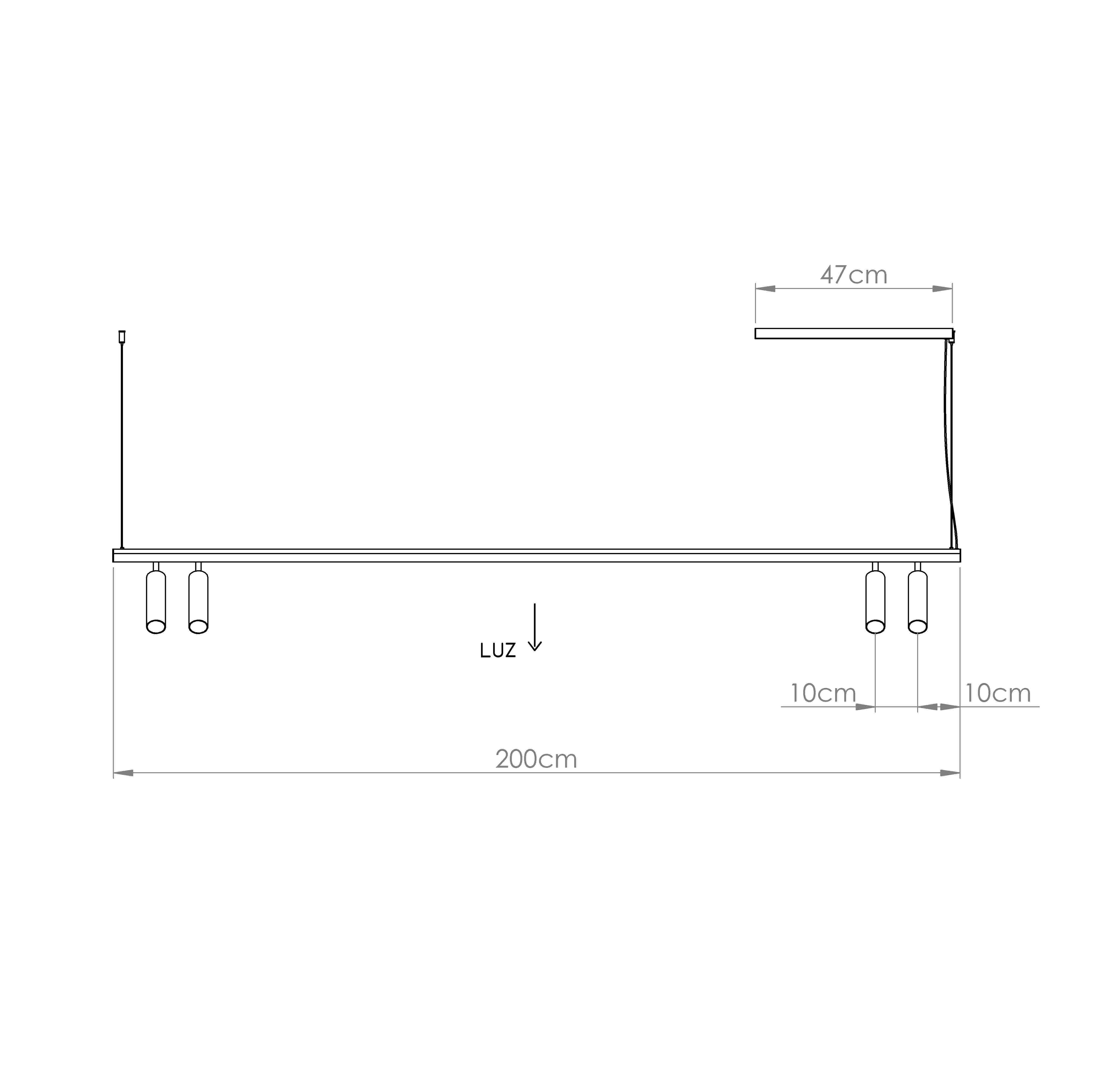 A estrutura possui 120cm de Comprimento e enviamos um cabo de 2,00m para que você possa instalá-lo perfeitamente.