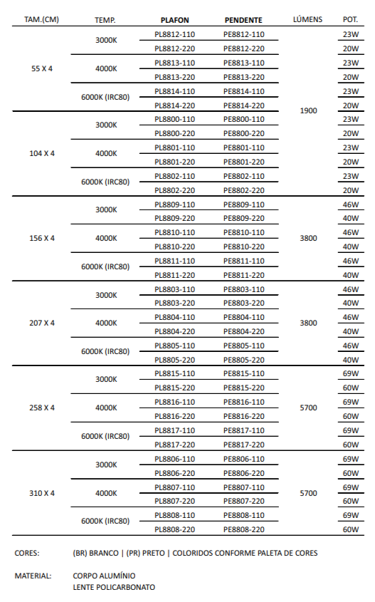 310x4cm - Potência de 110v é 69w e 220v é 60w - 5700Lm de Lúmens