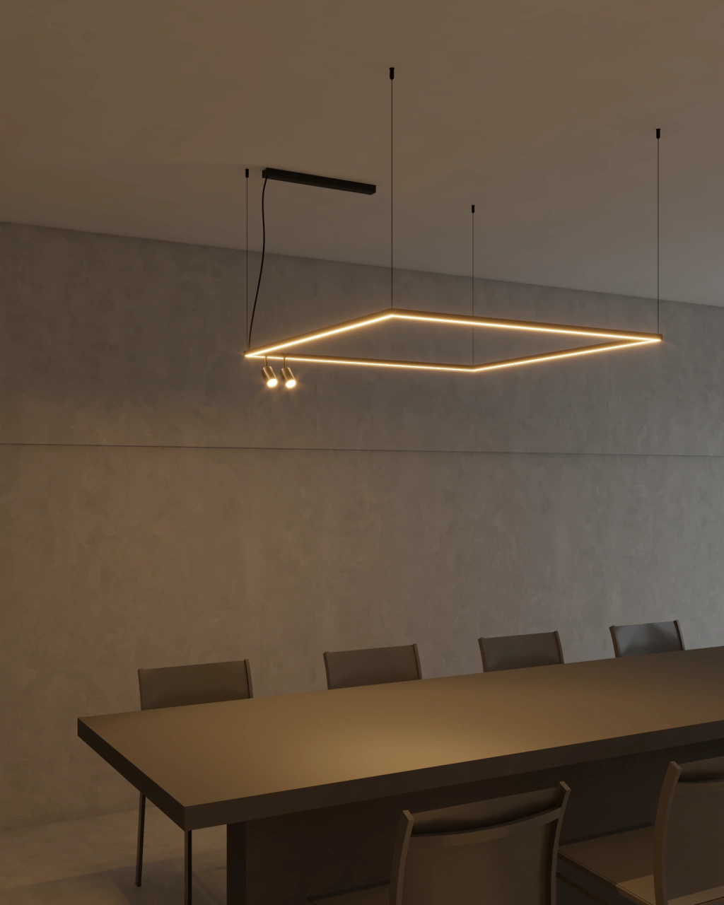 Indicamos o Lustre Pendente Risk para Mesa de Jantar, Quartos, Salas, Escritórios e Apartamentos.