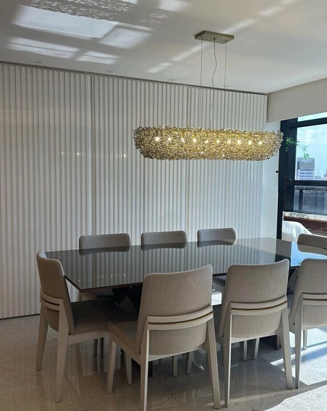 Indicamos o Pendente Retangular para Sala de Jantar e Sala de Estar.