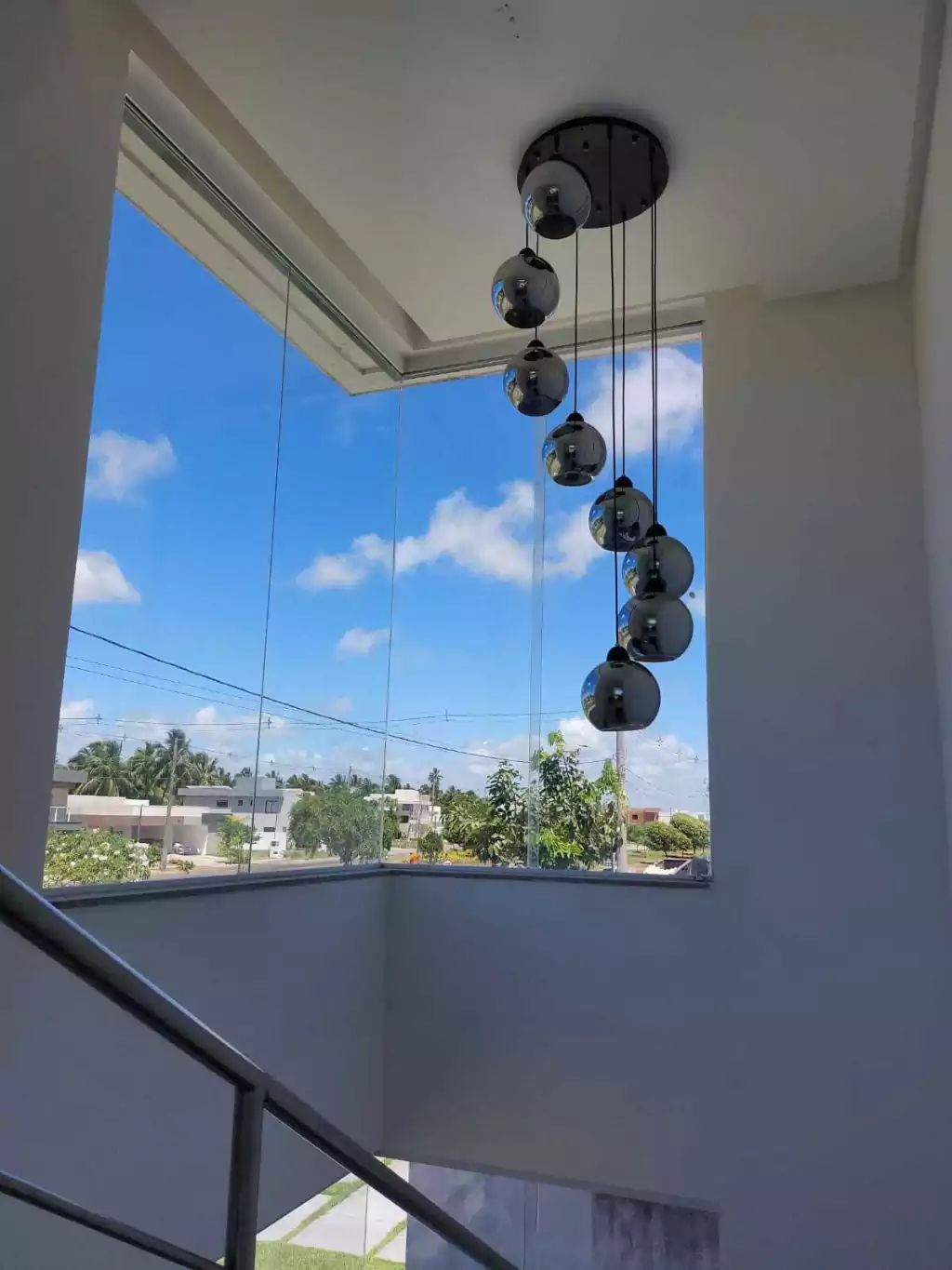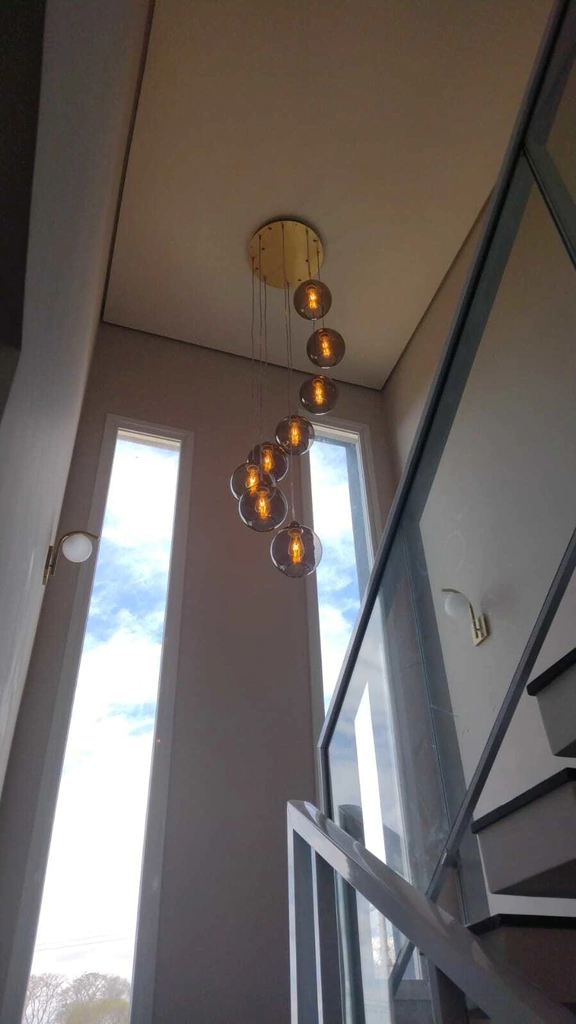 Desenvolvido com 8 Globos de 21cm de diâmetro nas tonalidades: Fumê, Âmbar,Transparente ou Fumê Espelhado (Importado) ideal para ambientes Pé Direito Duplo - Pé Direito alto - Escadas e Hall de Entrada.