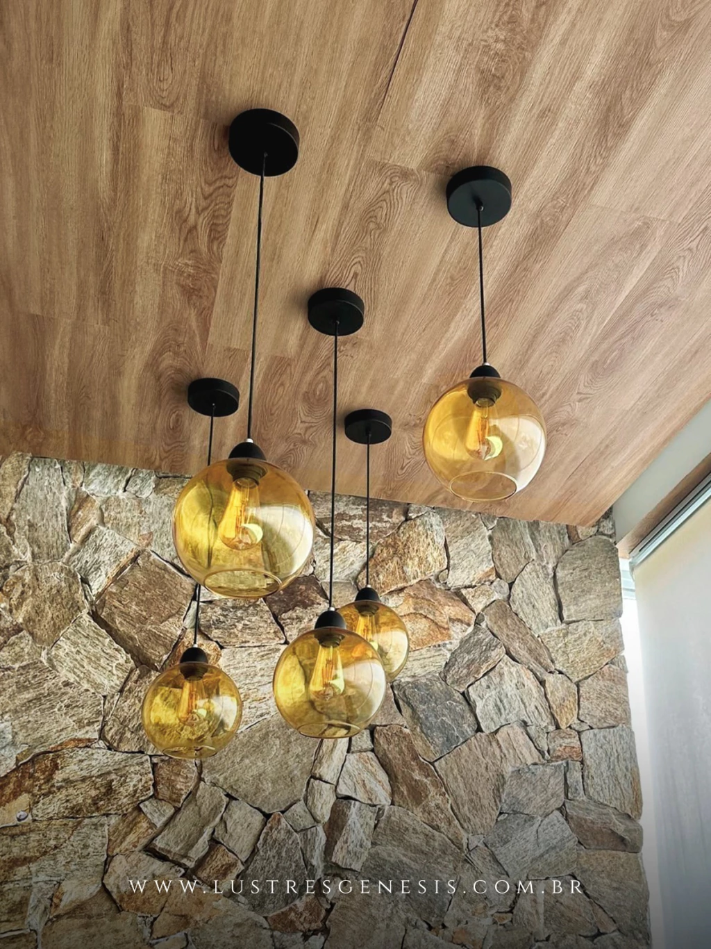 A altura do Pendente Sarvah varia de acordo com a necessidade do ambiente. Deixamos a critério do cliente, na altura de 1,50m mantendo sua proporcionalidade e design.