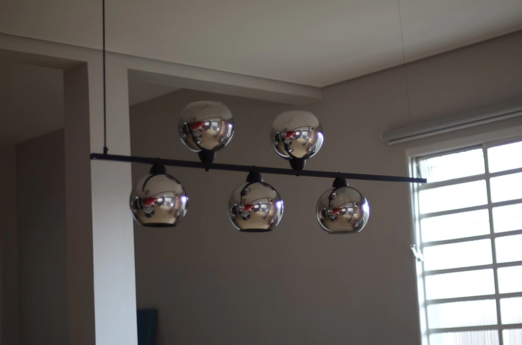 Após a instalação elétrica, fixe sua canopla no teto, regule a altura da sua preferência e insira os globos.
