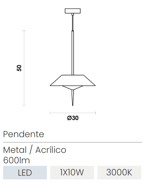 Possui uma iluminação fixa de 3000k Branco Quente, 600Lm de Lúmens e 10W de Potência.