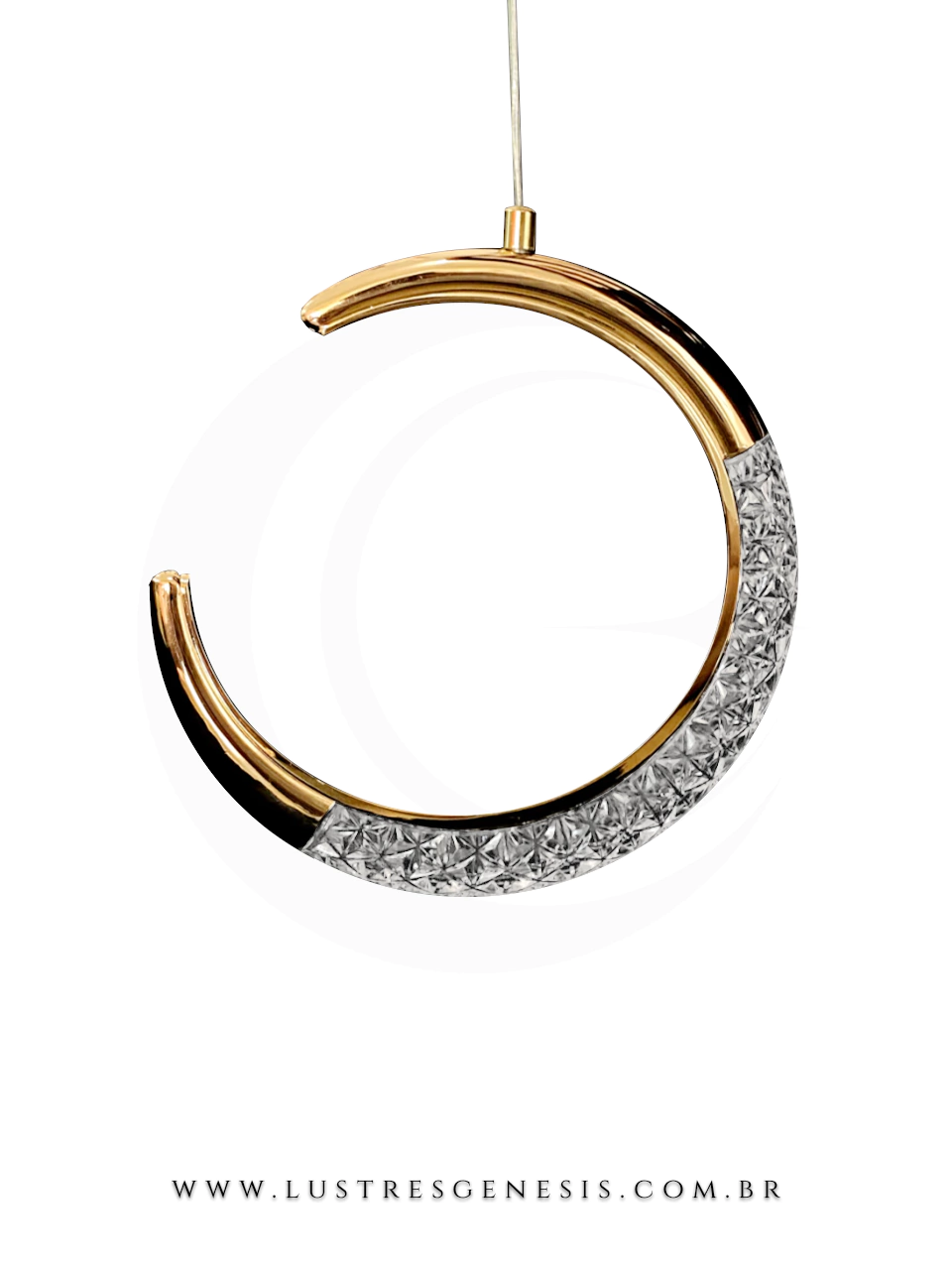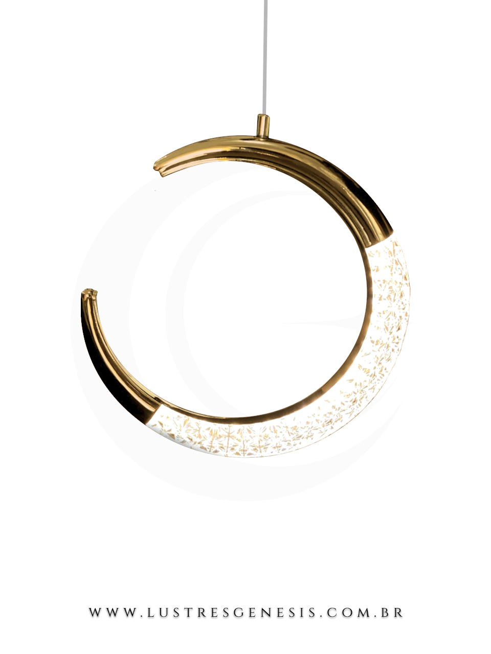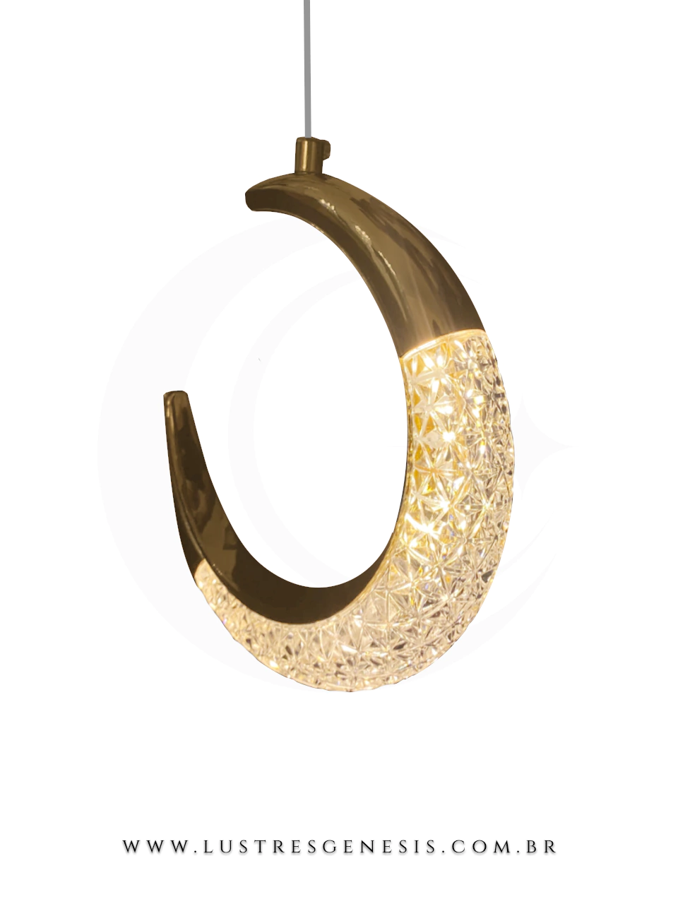 O Pendente Lua traz a beleza celestial para sua casa. Seu design em formato de meia lua, com um acabamento dourado que reflete a luz, e a parte interna em acrílico, crioa um efeito luminoso deslumbrante.
