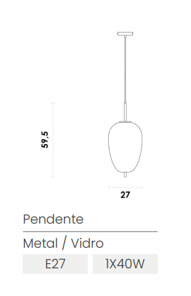 É utilizada 1 Lâmpada E-27 no Pendente Tres.