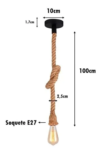 É utilizado 1 Lâmpada Soquete E27 Pendente Corda.