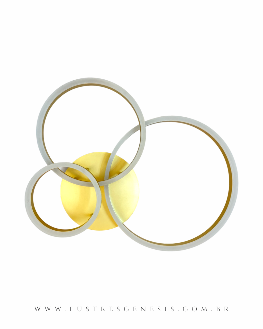 O Plafon Aliança possui 3 Anéis nas medidas Ø20cm, Ø30cm e Ø40cm de diâmetro.