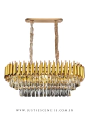 Lustre Pendente de Cristal Lux Retangular Dourado Rose para Sala de Jantar, Closet, Buffet, Sala de Estar e Quartos
